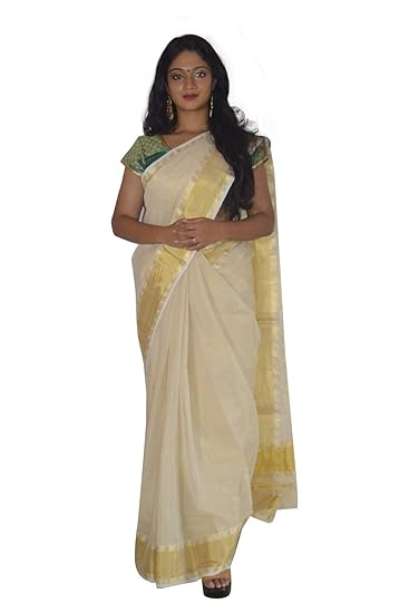 Buy Online White & Gold Sarees from BuyBestBrands.in in Association with Amazon India